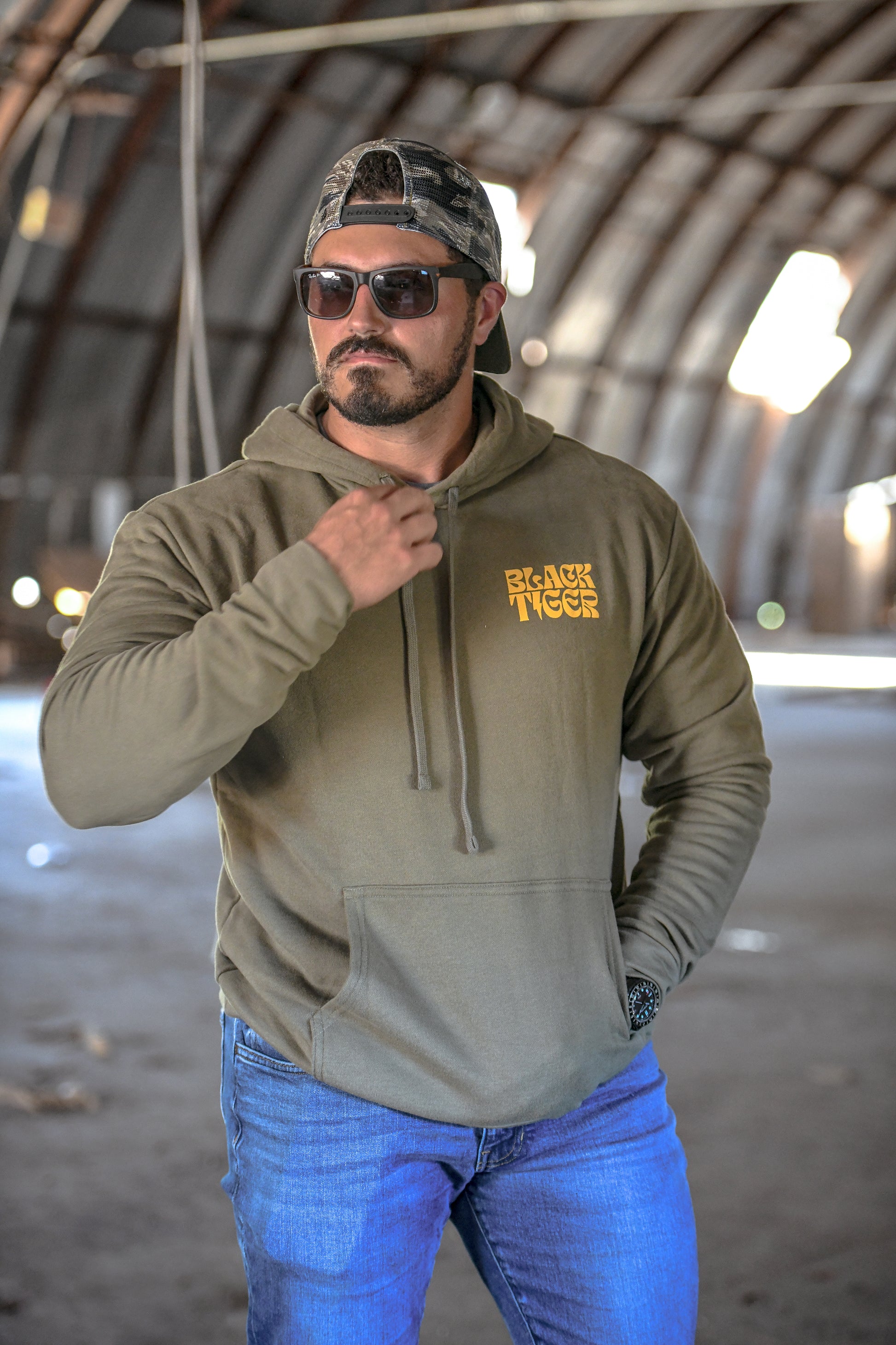 Features "Black Tiger" on the front left chest and full Attack Tiger logo on the back in black ink or Ammo Can Yellow ink.