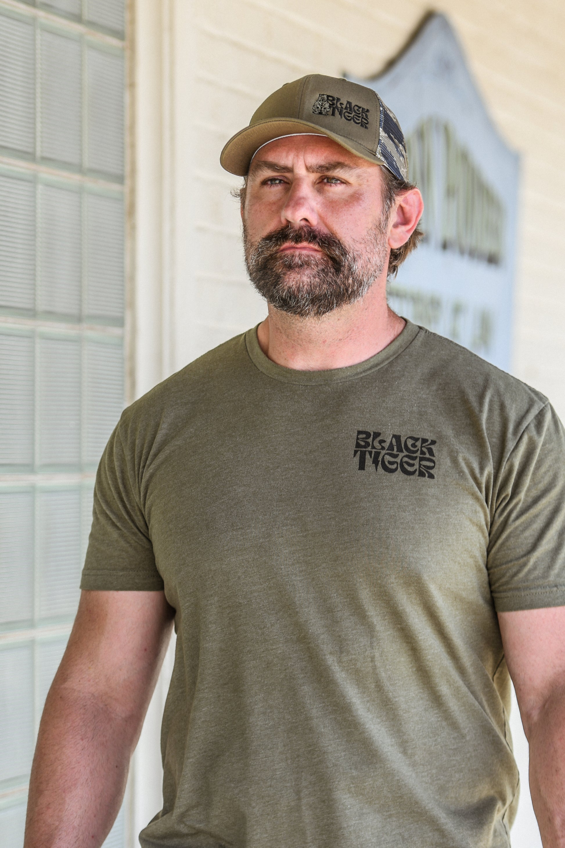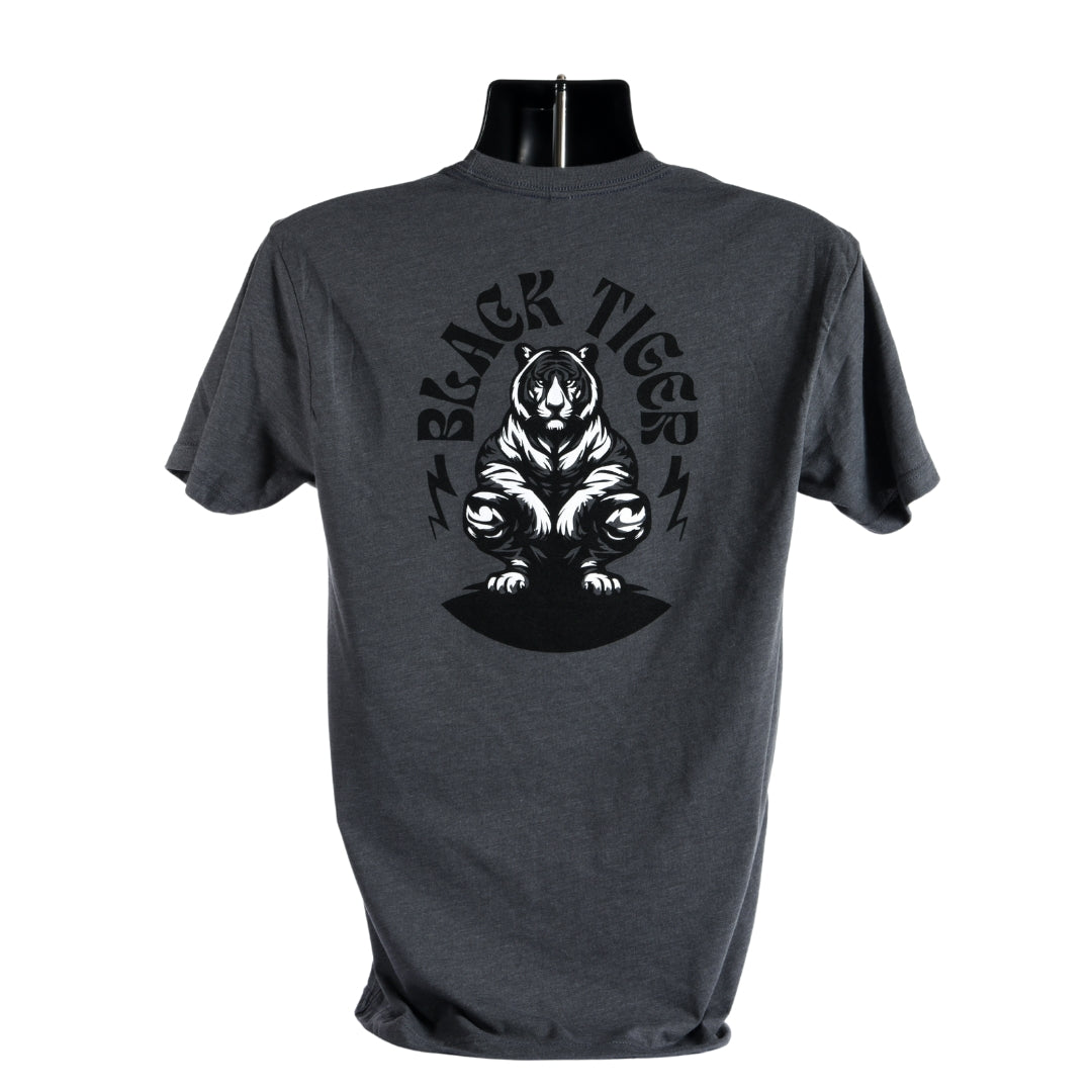 Our Standard Black Tiger Logo "T" printed on everyone's favorite soft and cozy "Next Level" shirt features "Black Tiger" on the front left chest and full Black Tiger on the back.