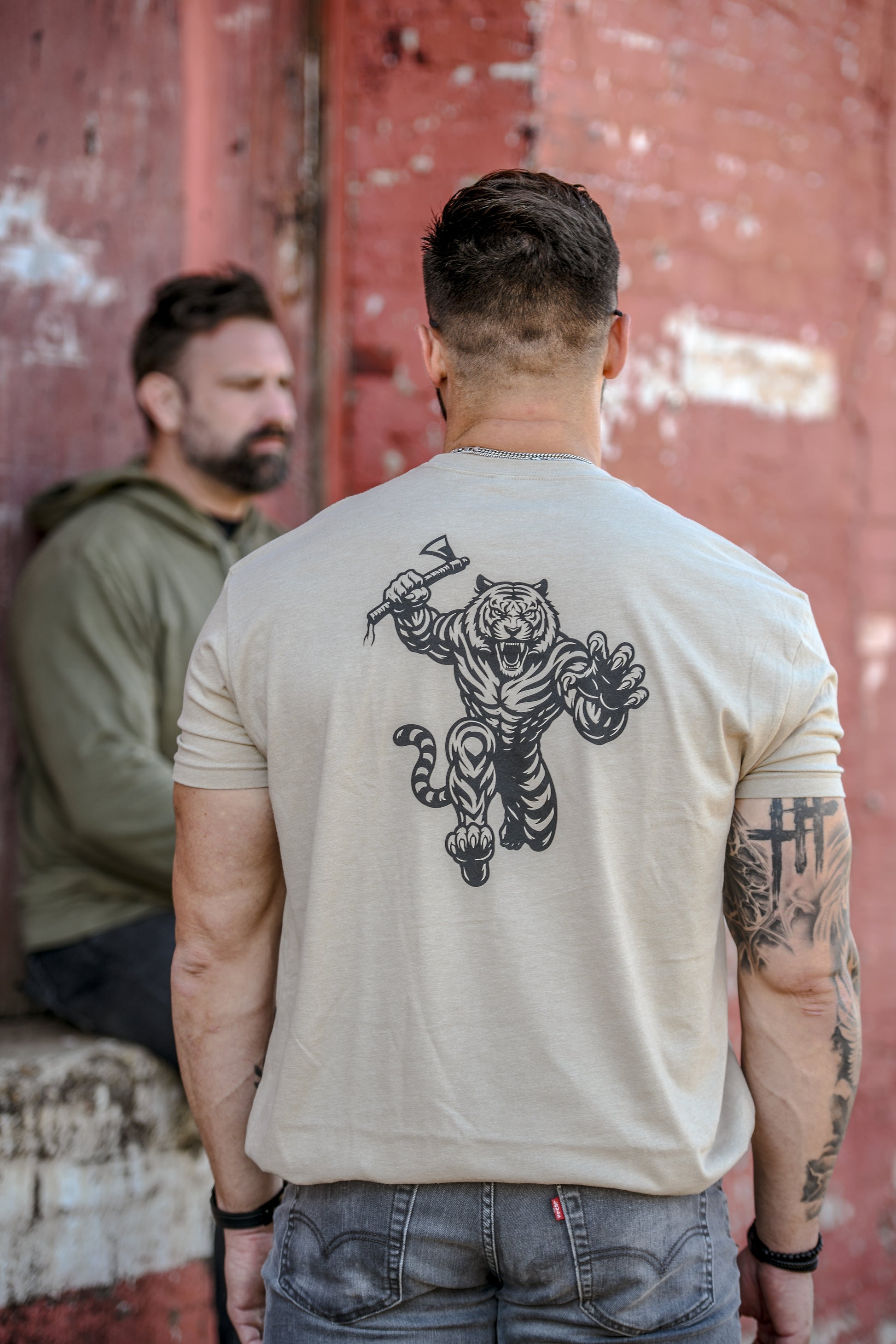 Our new Tomahawk Black Tiger Logo "T" printed on everyone's favorite soft and cozy "Next Level" shirt in desert sand color.